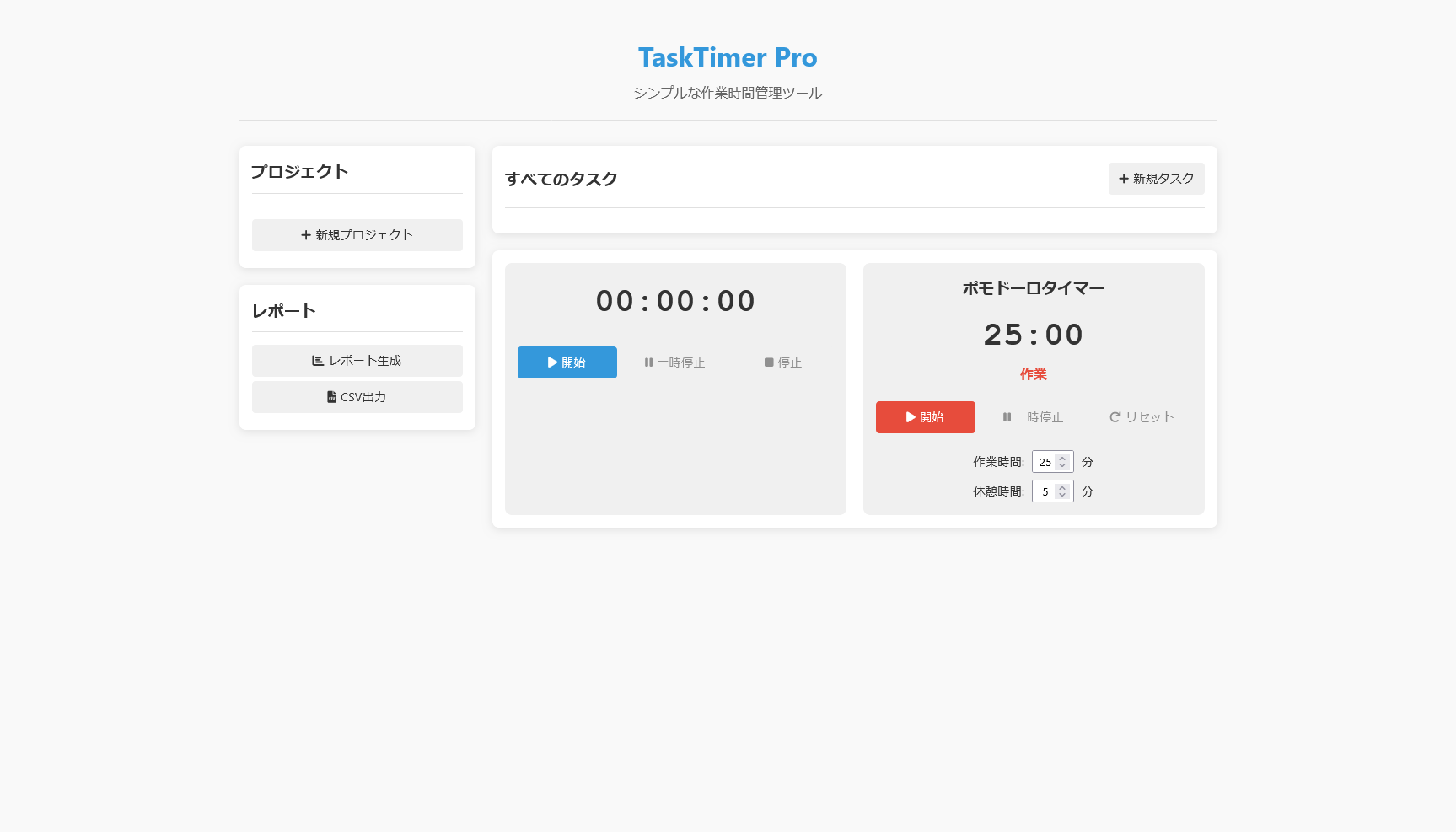 TaskTimer Pro ¥3,960 - TaskTimer Pro個 + お買い物カゴに追加 カテゴリー: ソフトウェア 説明 レビュー (0) 説明 シンプルで使いやすい作業時間管理ツール TaskTimer Proは、日々の作業時間を簡単に記録・分析できるタイムトラッキングソフトウェアです。フリーランサーや小規模チーム向けに開発されました。 対応OS Windows 10/11 macOS 10.14以降 動作環境 CPU: 1GHz以上のプロセッサ メモリ: 2GB以上 ストレージ: 100MB以上の空き容量 主な機能 タスク別時間追跡 プロジェクト管理 基本的なレポート生成 CSV形式でのエクスポート ポモドーロタイマー機能 レビュー レビューはまだありません。 “TaskTimer Pro” の口コミを投稿します コメントをキャンセルメールアドレスが公開されることはありません。 ※ が付いている欄は必須項目です評価 * 評価… 最高 良好 平均 良くない 悪い レビュー *名前 * メール * 次回のコメントで使用するためブラウザーに自分の名前、メールアドレス、サイトを保存する。 Δ 関連商品 MarkNote Editor ¥2,420 お買い物カゴに追加 BudgetTracker ¥2,970 お買い物カゴに追加